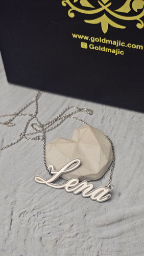 پلاک و زنجیر نقره اسم لنا با آبکاری رادیوم (طلا سفید)