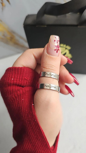 انگشتر سفارشی استیل رنگ ثابت طرح ناخنکاری