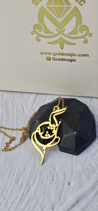 پلاک و زنجیر استیل رنگ ثابت با آبکاری طلا طرح اسم تلفیقی افشین و نگین
