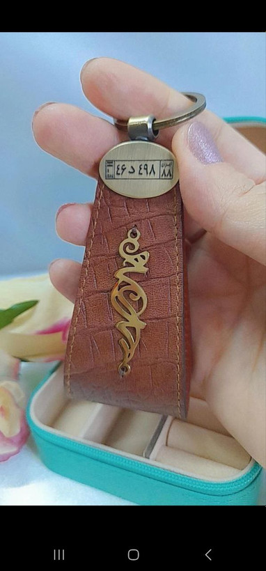 جاسوئیچی چرم طبیعی با پلاک استیل سفارشی ساز رنگ ثابت