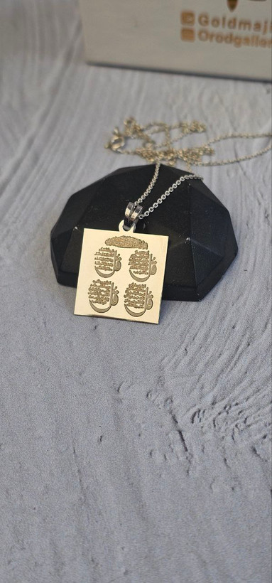 پلاک نقره با آبکاری رادیوم (رنگ ثابت) با حک چهار قل