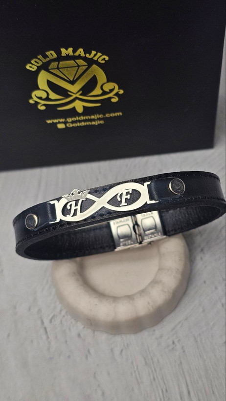 دستبند چرم طبیعی با چلاک نقره سفارشی نقره رنگ ثابت با آبکاری طلا