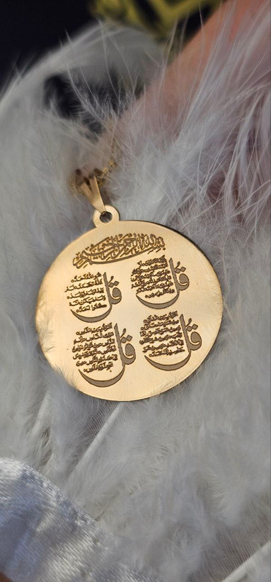 پلاک زنجیر استیل رنگ ثابت با طرح آیه قرانی چهارقل